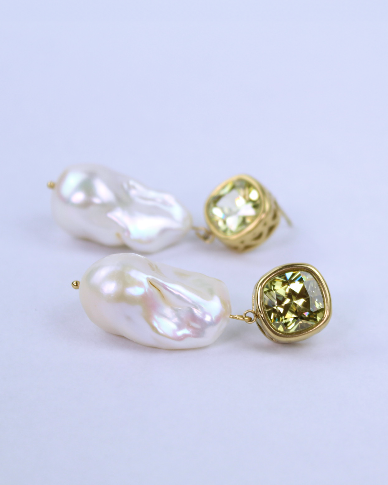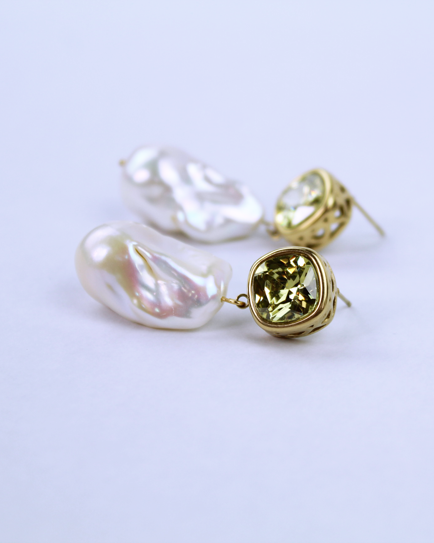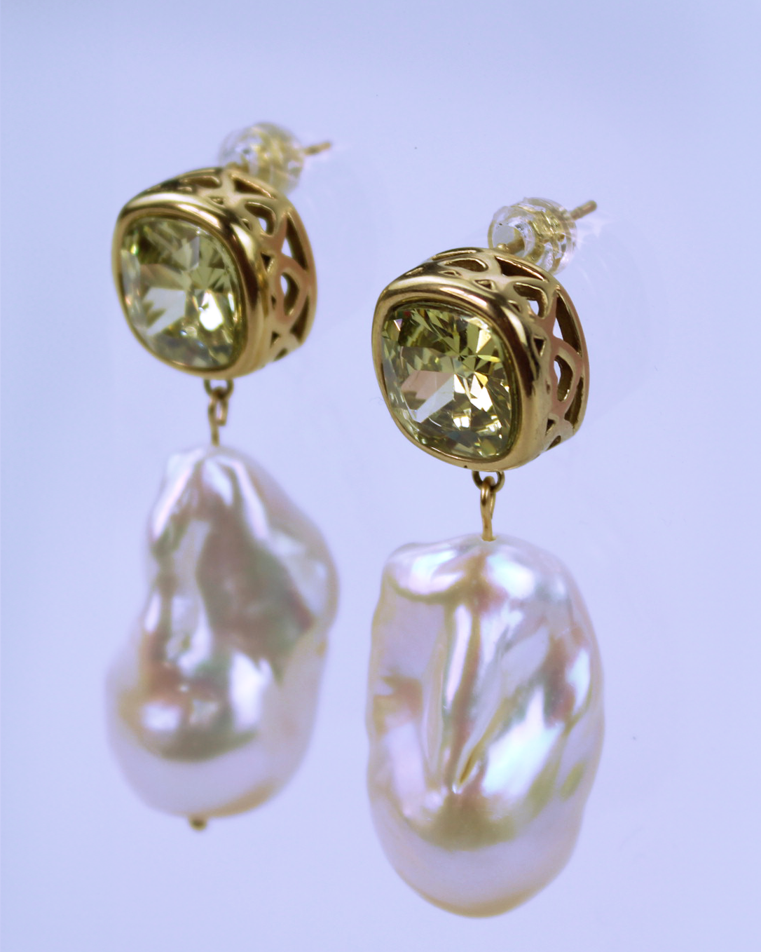 Die ungezähmte Schönheit barocker Süßwasserperlen trifft auf fein verarbeiten Edelstahl mit 14-karat- Vergoldung.