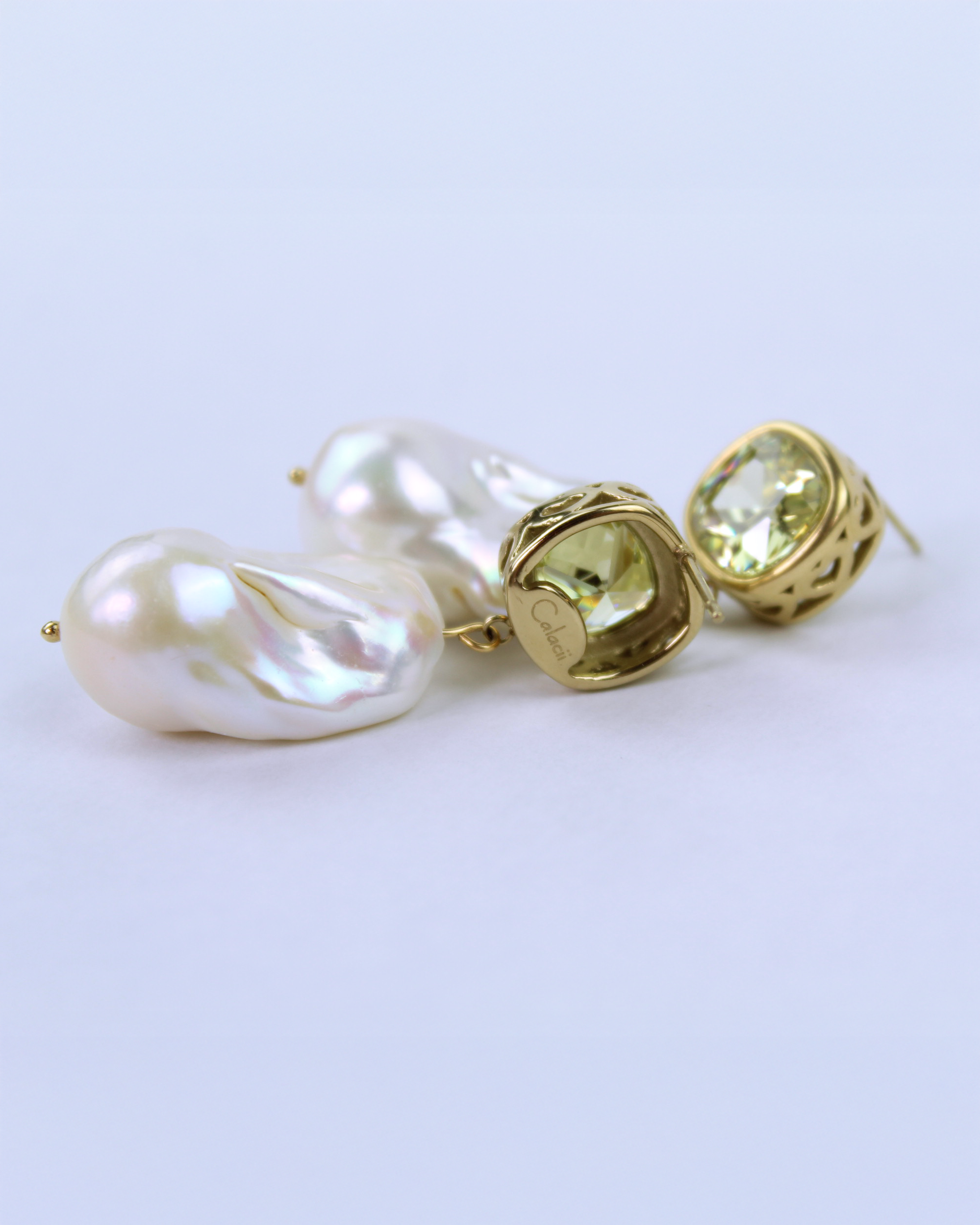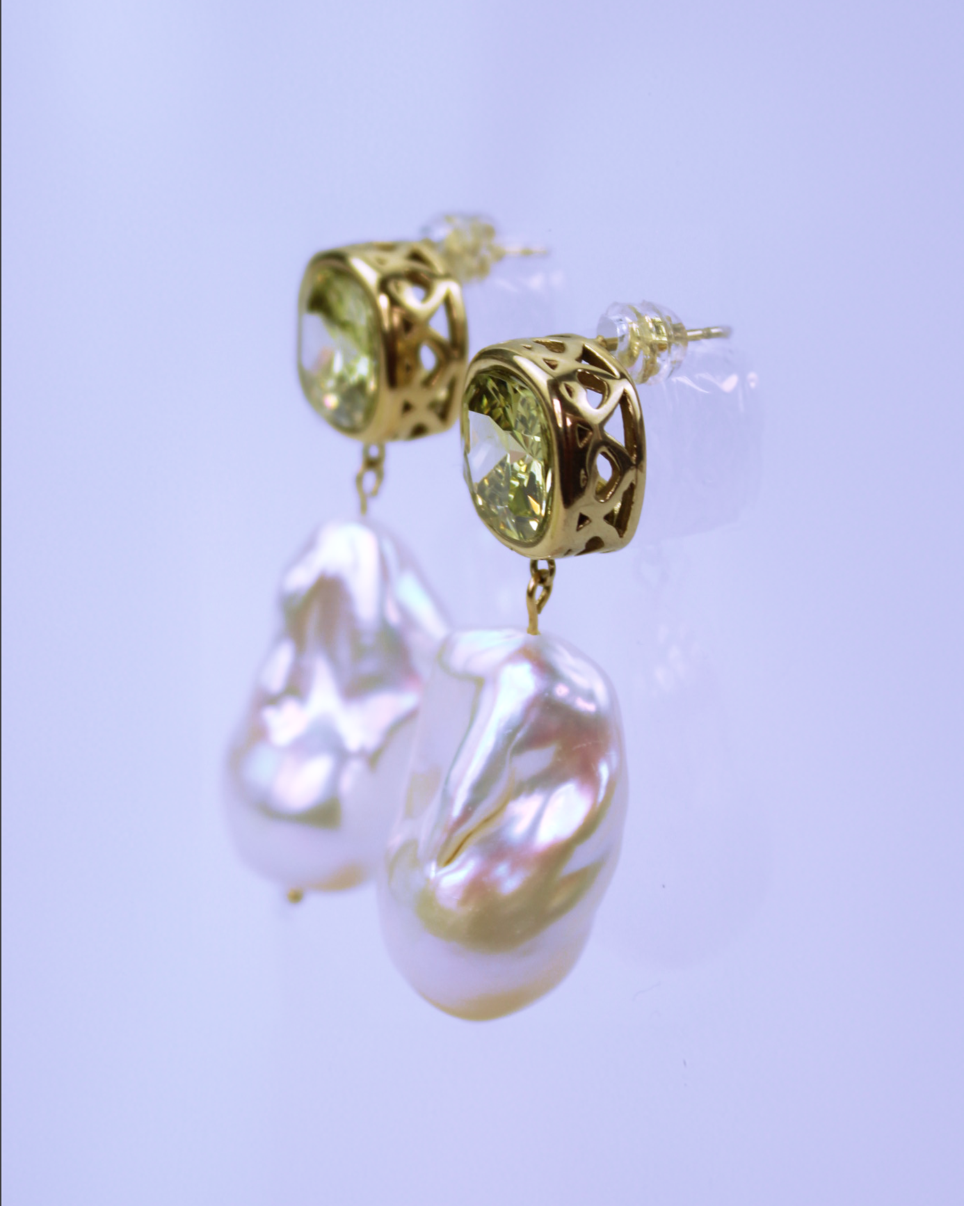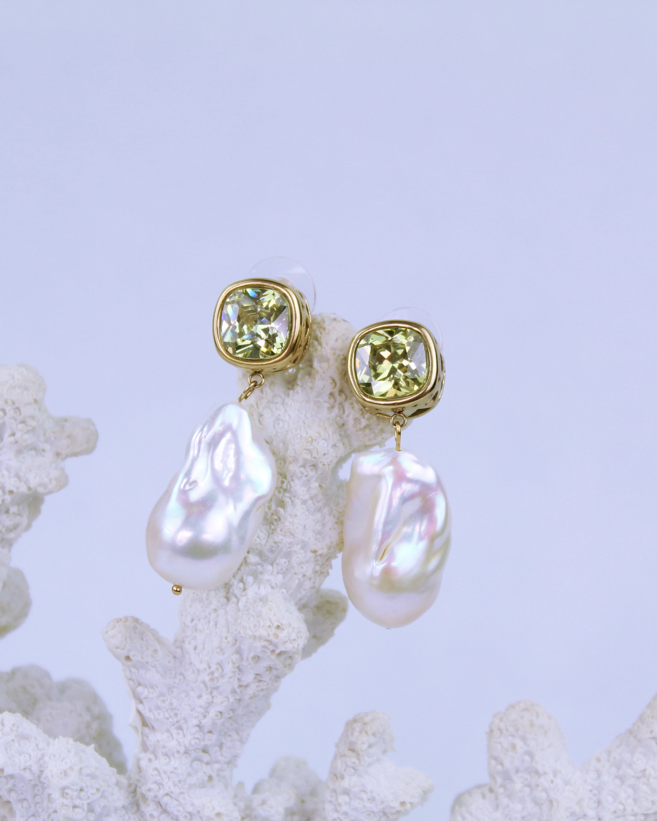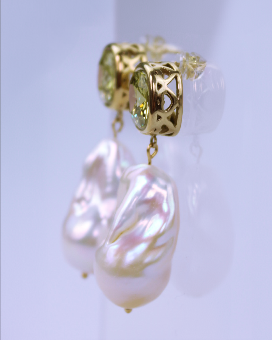 Die ungezähmte Schönheit barocker Süßwasserperlen trifft auf fein verarbeiten Edelstahl mit 14-karat- Vergoldung.