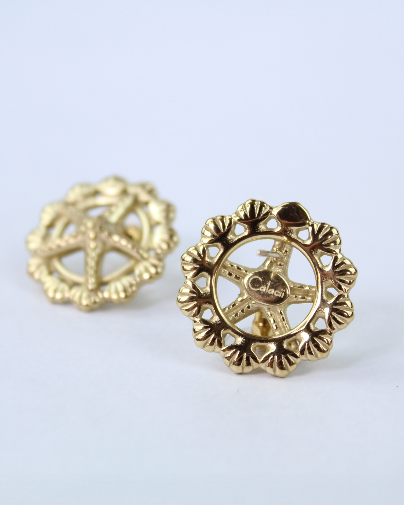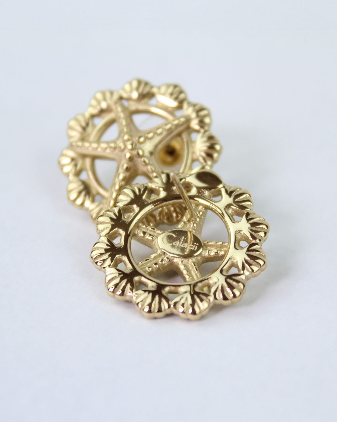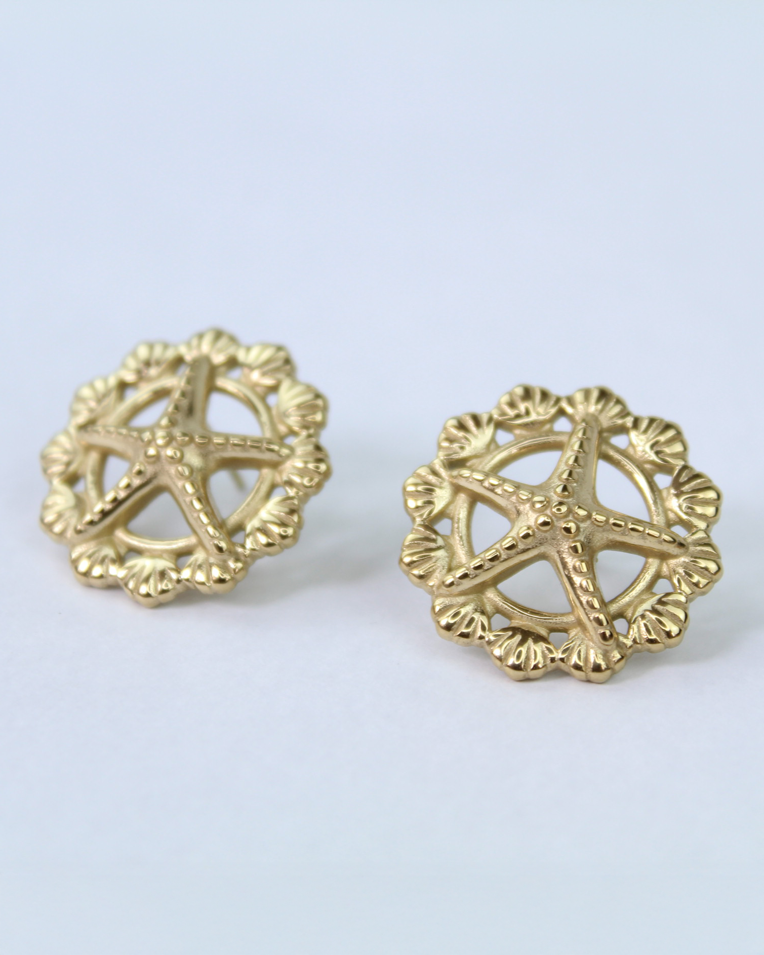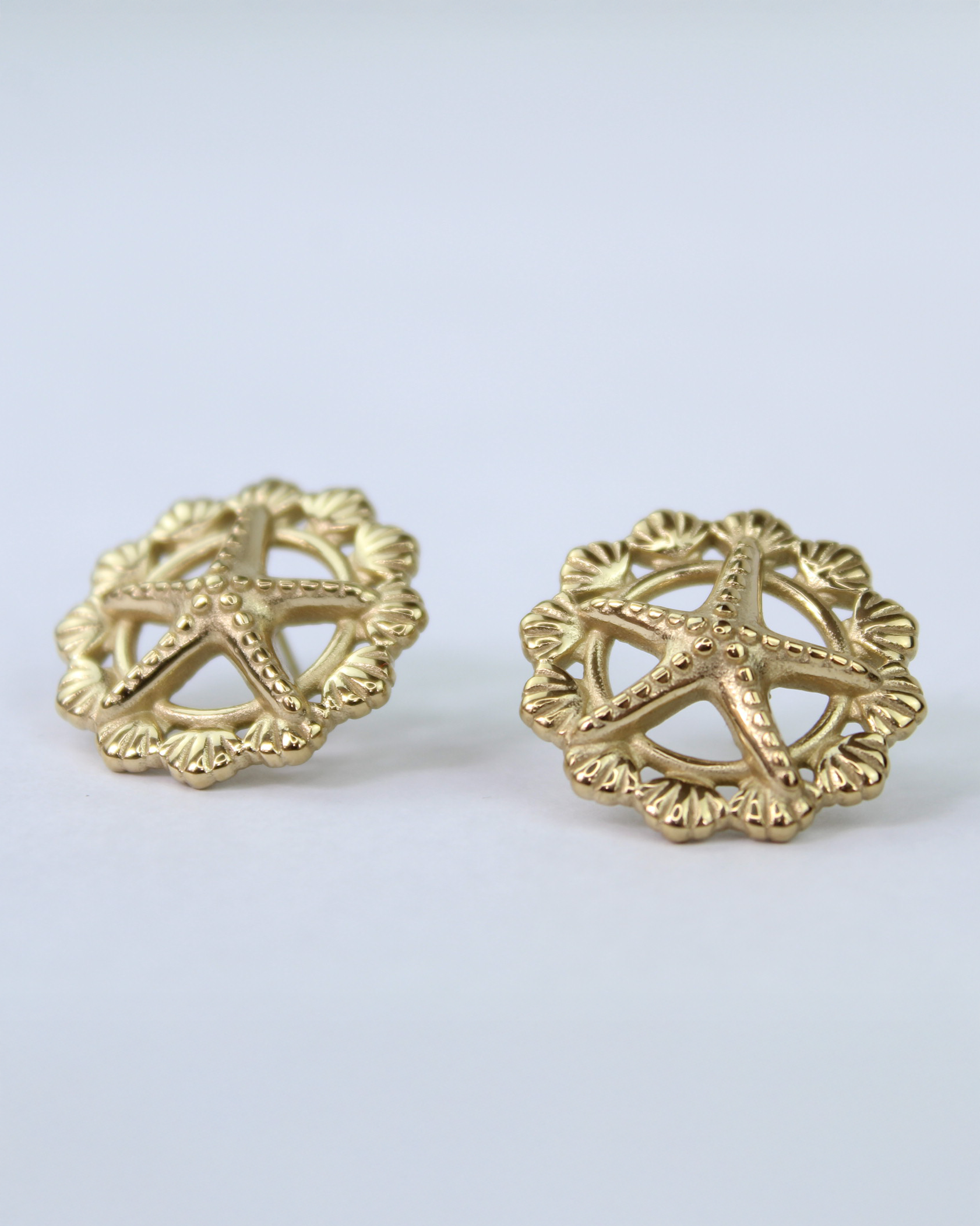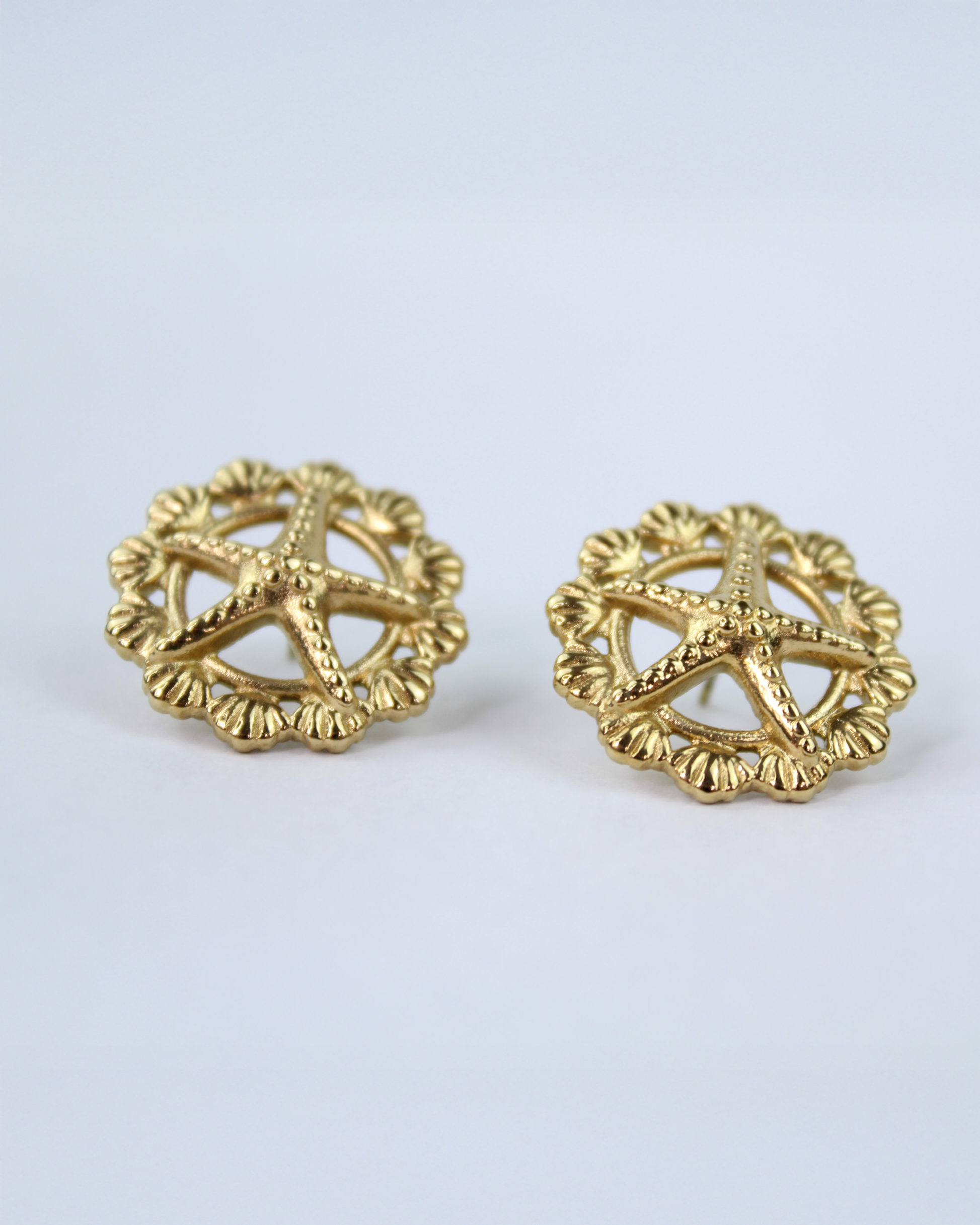 Stella Marina - Ohrstecker mit Seestern & Muscheldetail, 14k vergoldet.